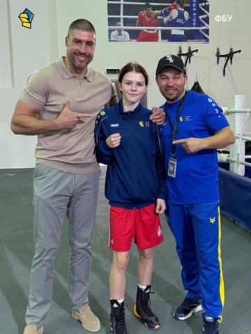 Щирі вітання також її наставнику — старшому тренеру збірної України з боксу серед дівчат Андрію Бичкову!